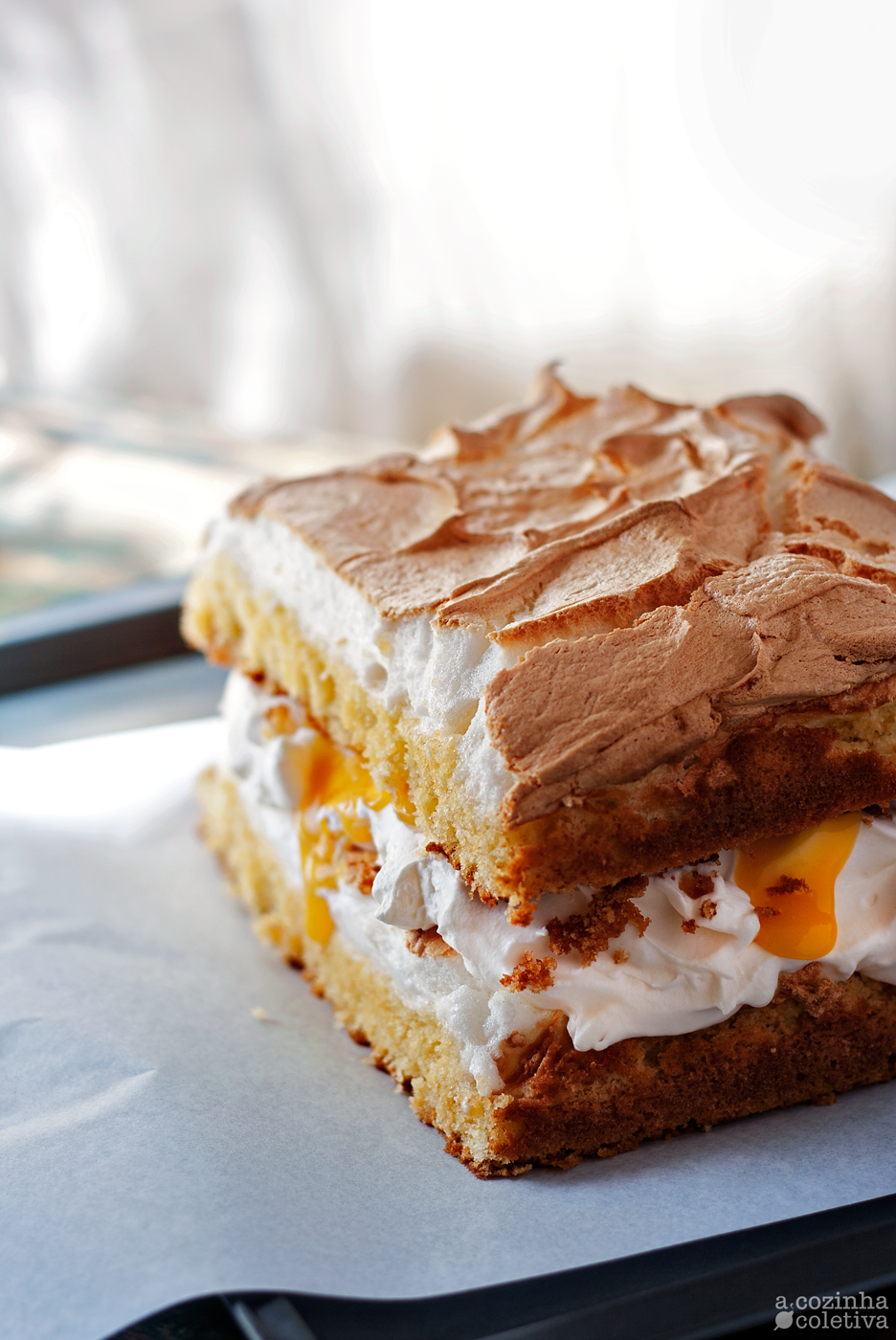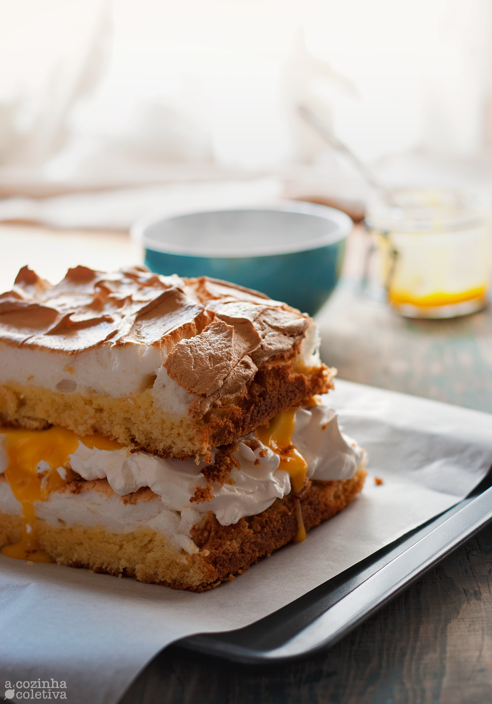 Faz um tempão que eu venho paquerando o Lemon Meringue Cake do site da Nigella! Diferente dos bolos de limão e merengue comuns, nessa receita o suspiro assa no forno junto com a massa do bolo, formando uma camada macia e esponjosa, como o interior de uma pavlova, e uma casquinha crocante por cima. Tudo isso recheado com creme chantilly e curd de limão. Não tem como não ficar bom, né?!