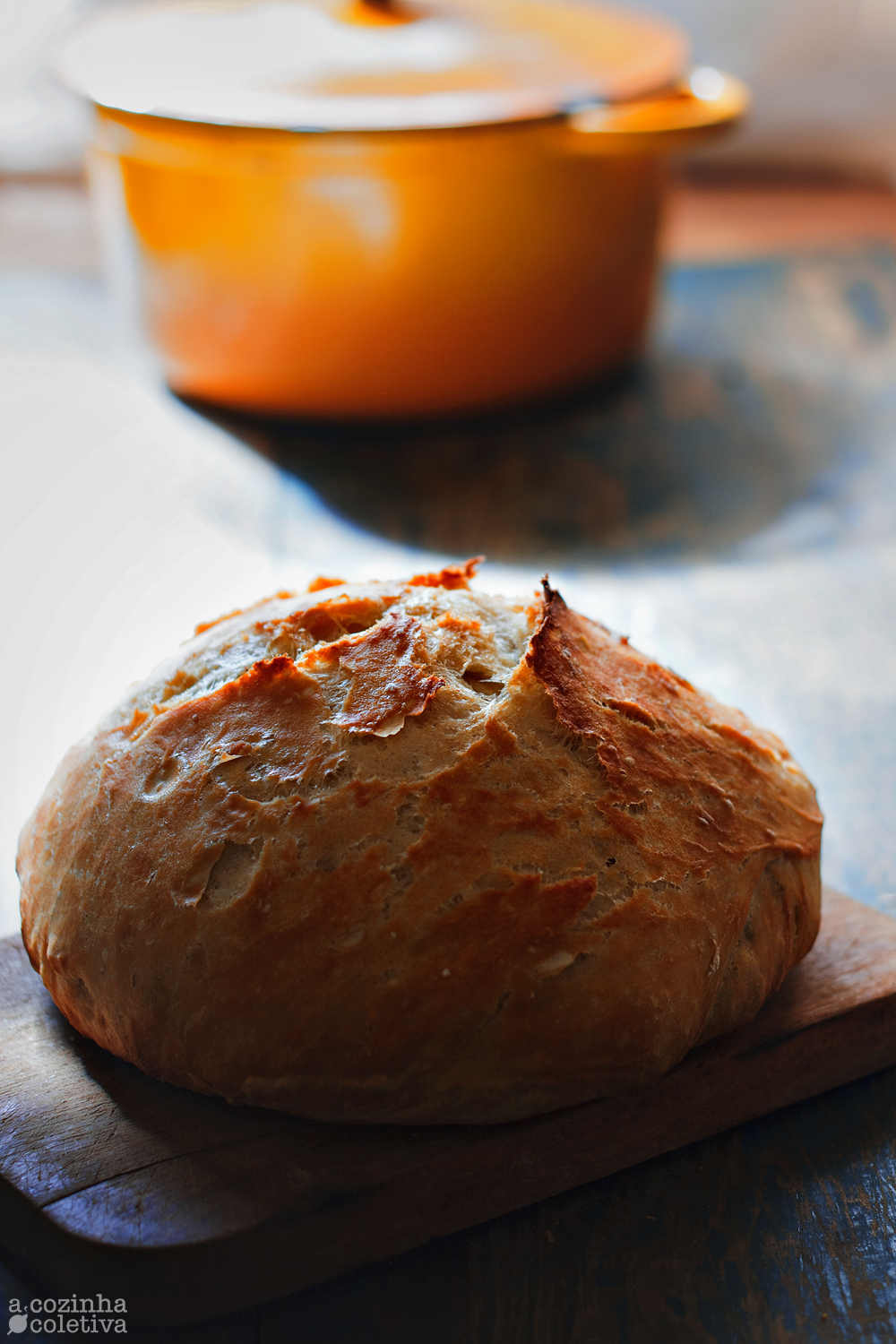 Eu definitivamente não sou de fazer pão - não tenho a experiência necessária para saber se tá dando certo, se é preciso mais farinha, se está no ponto, nem nada. Por isso nem tento. Mas é que outro dia vi uma receita tão, mas tão fácil, e com um resultado tão bonito, que tive que botar a mão na massa. Botar a mão na massa só no sentido literal, porque esse pão é tão fácil que nem precisa amssar. A receita é a seguinte: