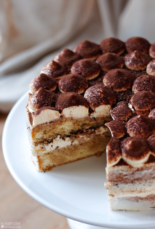 Acho que foi a lembrança dessa conversa que me fez enfrentar esse meu último [será mesmo o último?] grande resquício de paladar infantil e preparar uma sobremesa com café, esse Bolo Tiramisú.