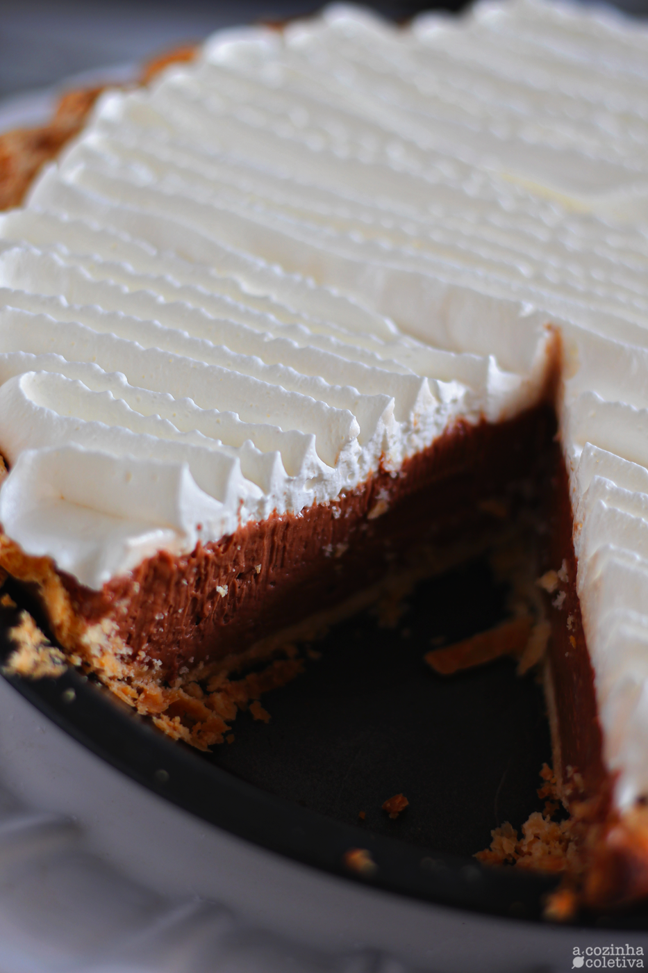 Com uma espátula ou usando o bico de confeiteiro [para dar um resultado mais bonito] espalhe o chantilly sobre a torta gelada.
